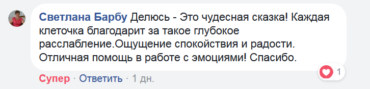 Глория, СПАСИБО тебе за палочку - выручалочку в виде медитаций с твоим сопровождением. Почему палочка – выручалочка? Да, потому что первая помощь и срочная была оказана именно твоей медитацией «Медитация на молодость». На тот момент, у меня была проблема с ногой. Встать с постели было трудно. И я начала ее слушать. Я слушала ее три раза в день: Утром, днем и на ночь. Итог: Я встала и наступила на ногу))) Это было, для меня чудом и до сих пор остается))